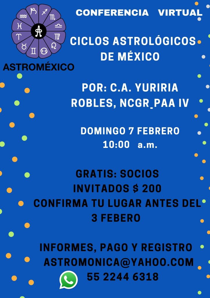 El objetivo de la plática es hacer conciencia del poder de la astrología para dar claridad, para reconocer cuáles son las energías planetarias activas en el país, que determinan lo que nos toca vivir y cómo podemos aprovechar las circunstancias, independientemente de nuestra postura o preferencia política. C.A. Yuriria Robles, NCGR-PAA IVTiene una práctica de […]