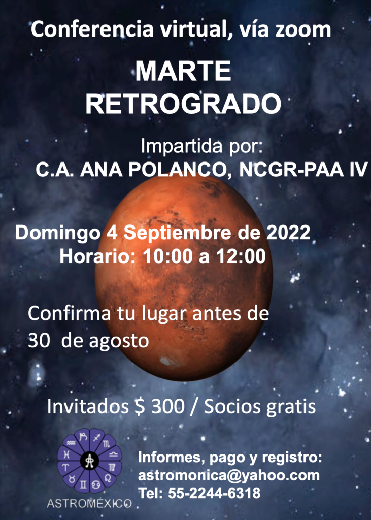 Mónica Escalante compartirá una breve introducción acerca de Plutón en la vida personal y a nivel mundano y, posteriormente todos los participantes tendrán la oportunidad de expresar en 3 minutos su vivencia de Plutón.A continuación habrá un pequeño convivio para fortalecer la amistad entre amigos y socios de AstroMéxico®-NCGR. Por: C.A. Mónica Escalante-Ochoa, NCGR-PAA IV […]