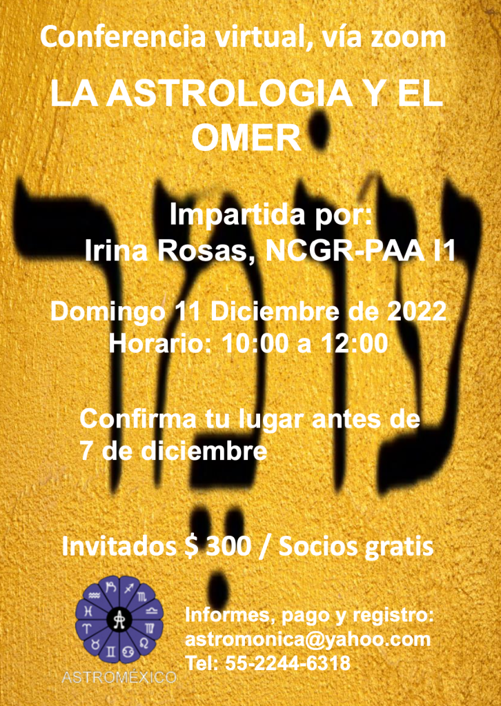 En el calendario kabbalista, cada año tenemos una apertura cósmica llamada Omer, durante la cual se dice que somos puestos a prueba, pues existe poca Luz disponible en el Universo. En esta platica analizaremos desde el punto de vista de la Astrología si existe alguna explicación para esta temporada; utilizando los tránsitos. Por: Irina Rosas, […]