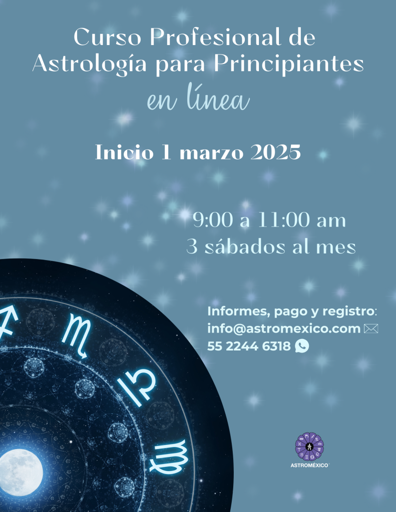 Por: Adriana Merchán CURSO VIRTUAL DE ASTROLOGÍA: DATOS DEL CURSOModalidad: En líneaPlataforma: ZoomFecha: 16 y 17 Noviembre 2024Idioma: EspañolHorario: Sábado 16 Noviembre: 10:00 – 17:00 (con 1 ½ hora de comida) Domingo 17 Noviembre: 10:00 – 14:00Costo de recuperación por ambos días: $ 4,500 Descripción del curso: ASTROGENALOGÍAEste curso ofrece una inmersión en la Astrogenalogía, una […]